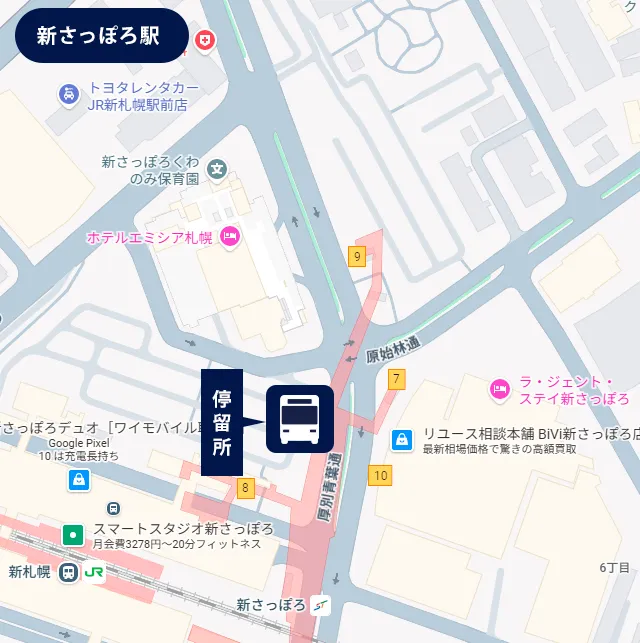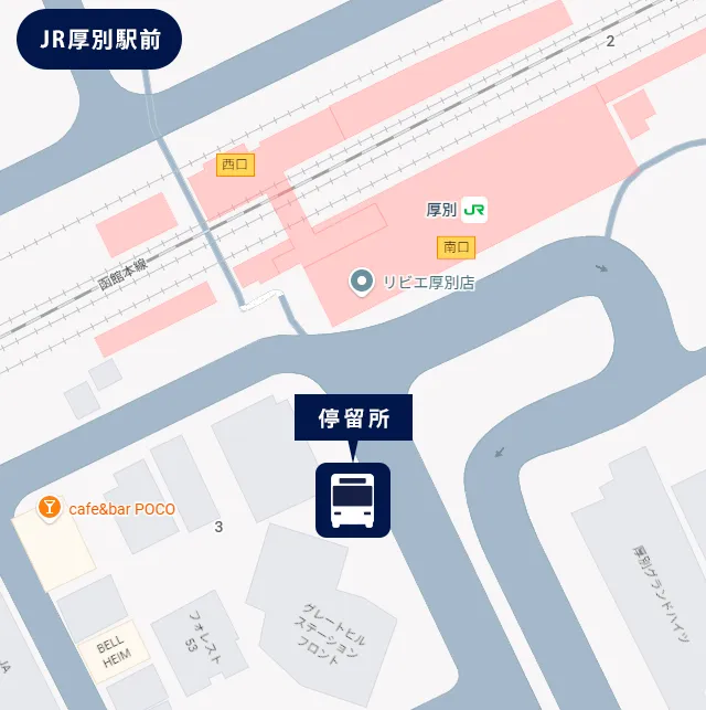 - 3便・7便はJR厚別駅到着後、運転士休憩のためバスは回送となります
