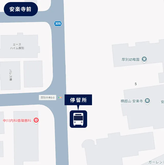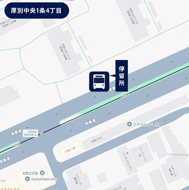 | 厚別中央5条5丁目 | 13:17 | 13:47 | 14:17 | 14:47 | 15:47 | 16:17 | 16:47 | 17:17 |